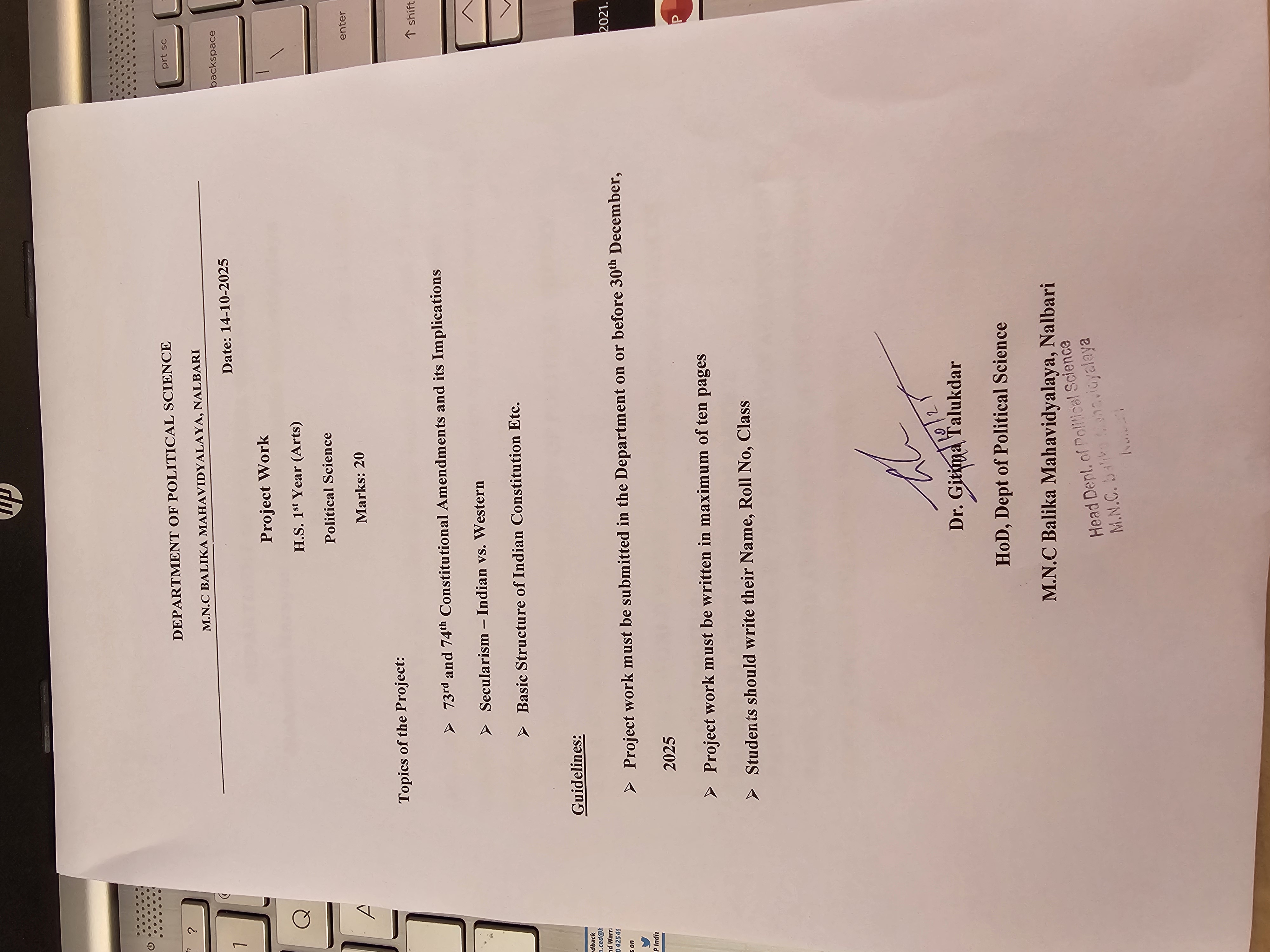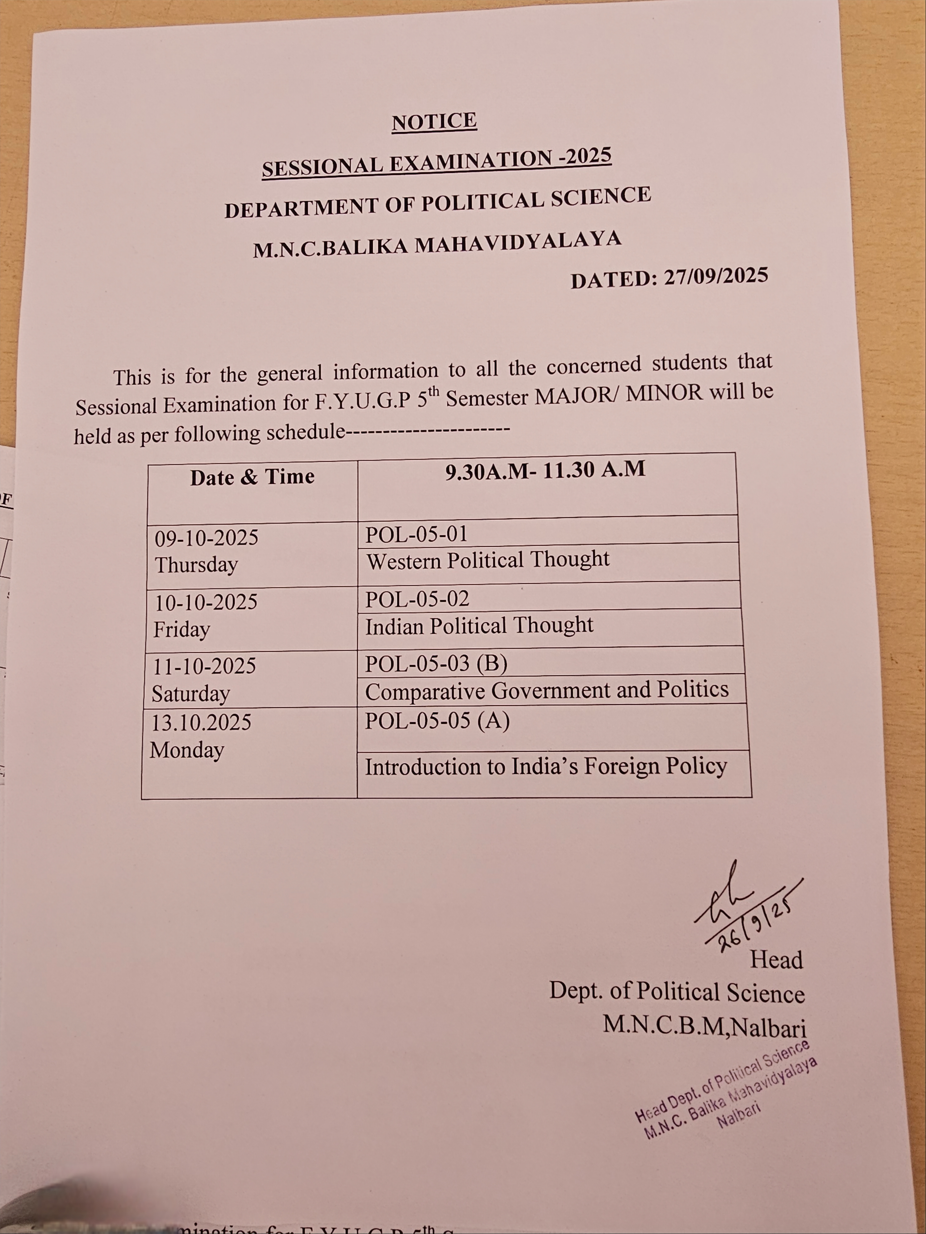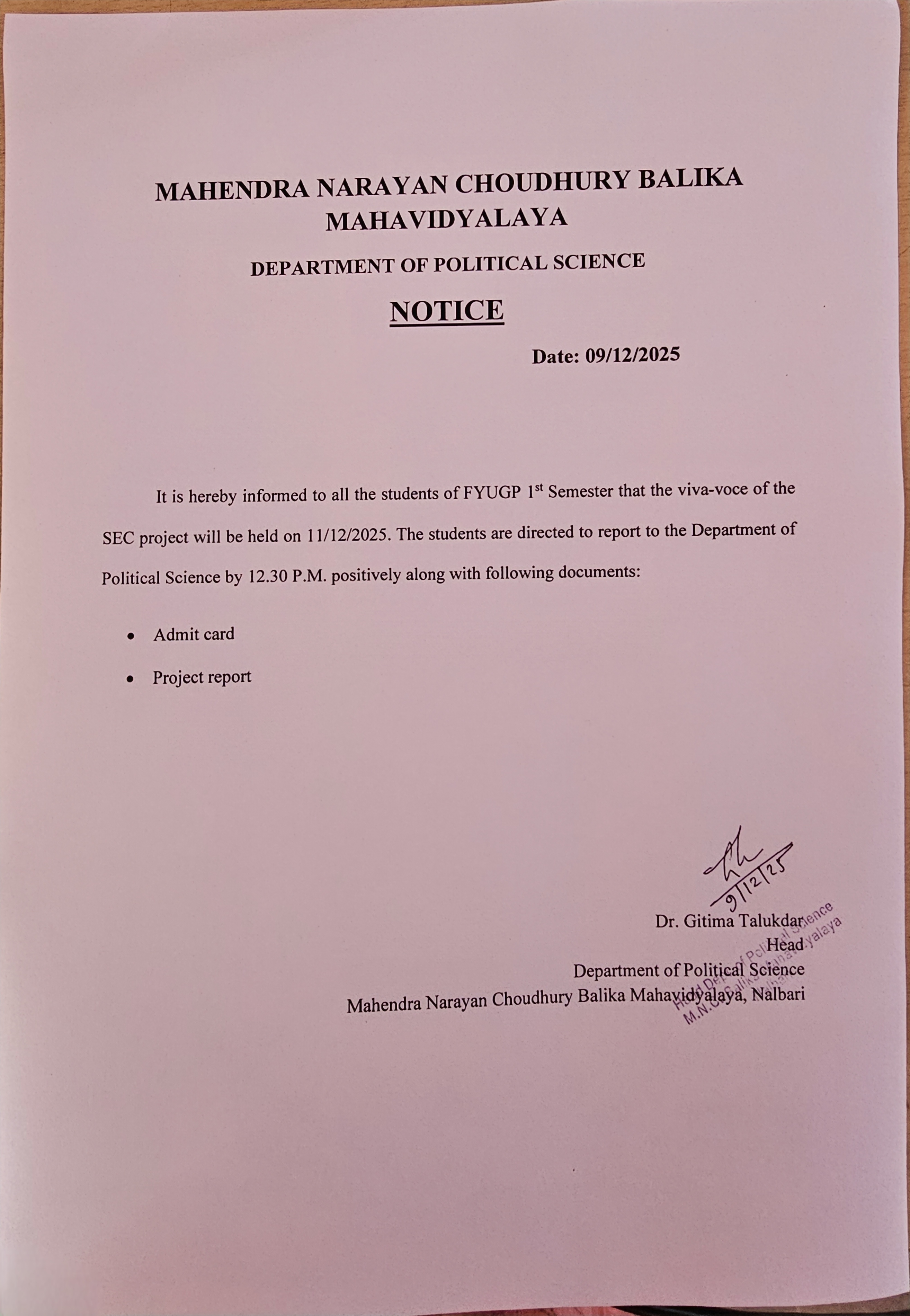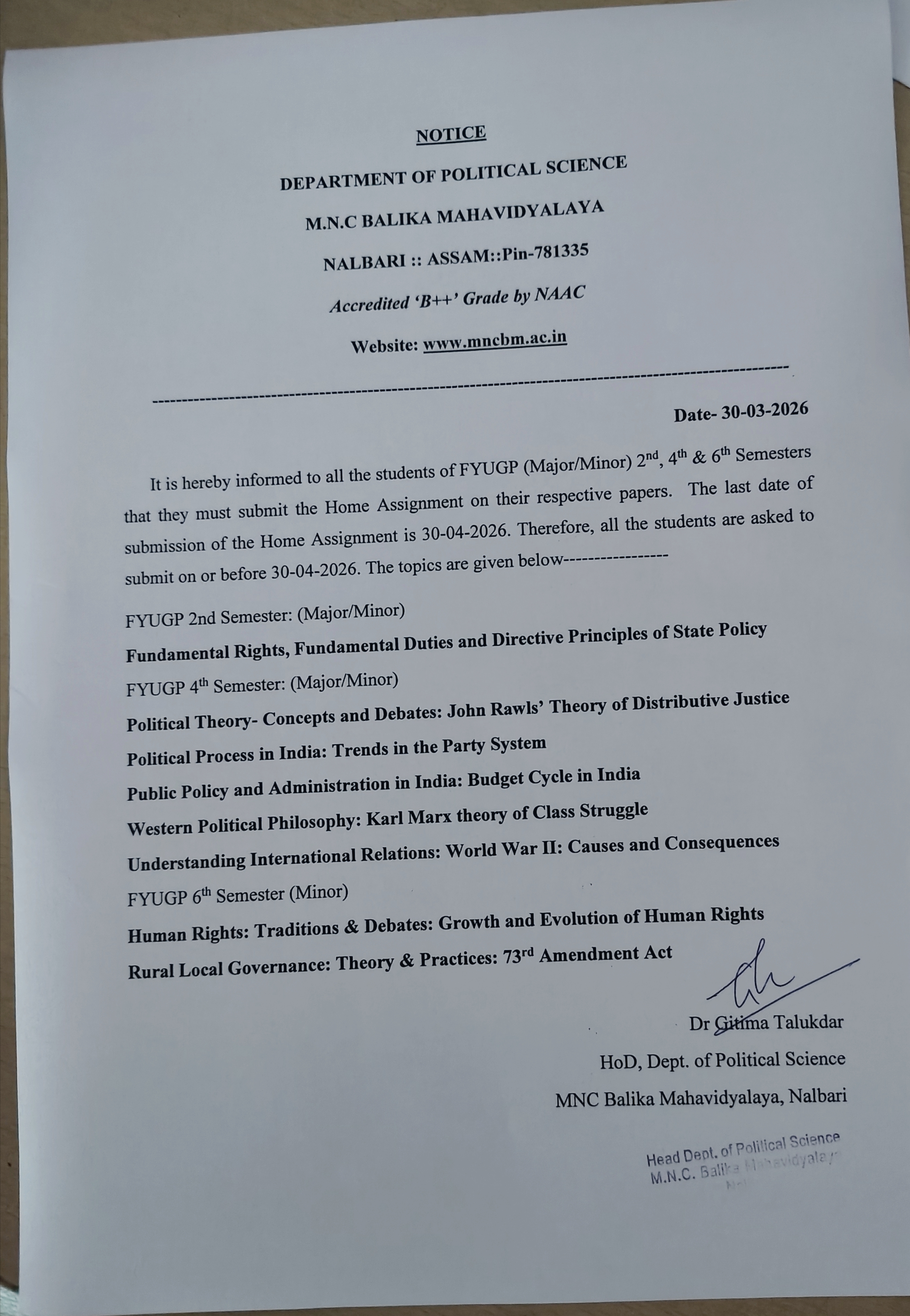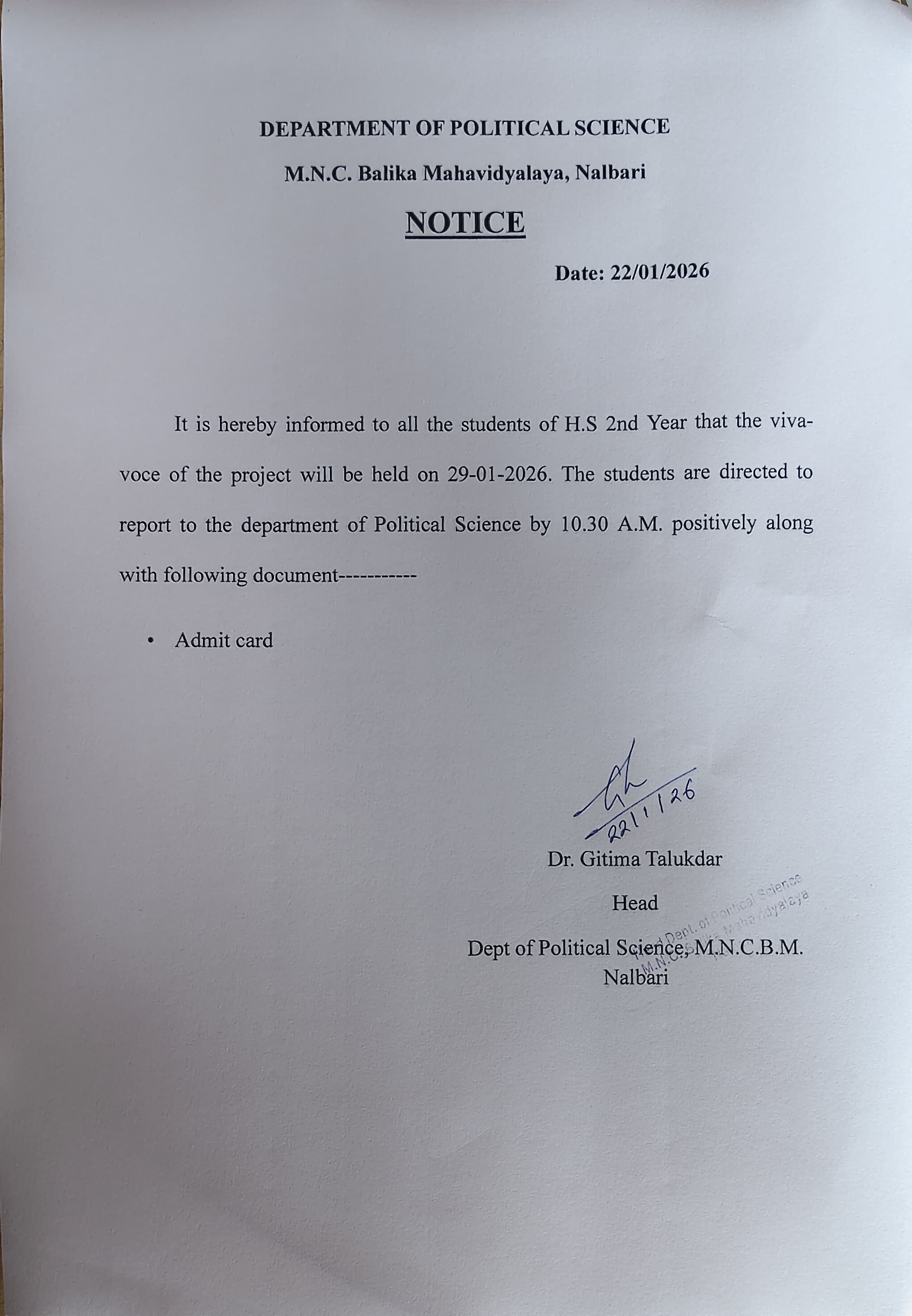 Welcome to the Department of Political Science, M.N.C. Balika Mahavidyalaya.