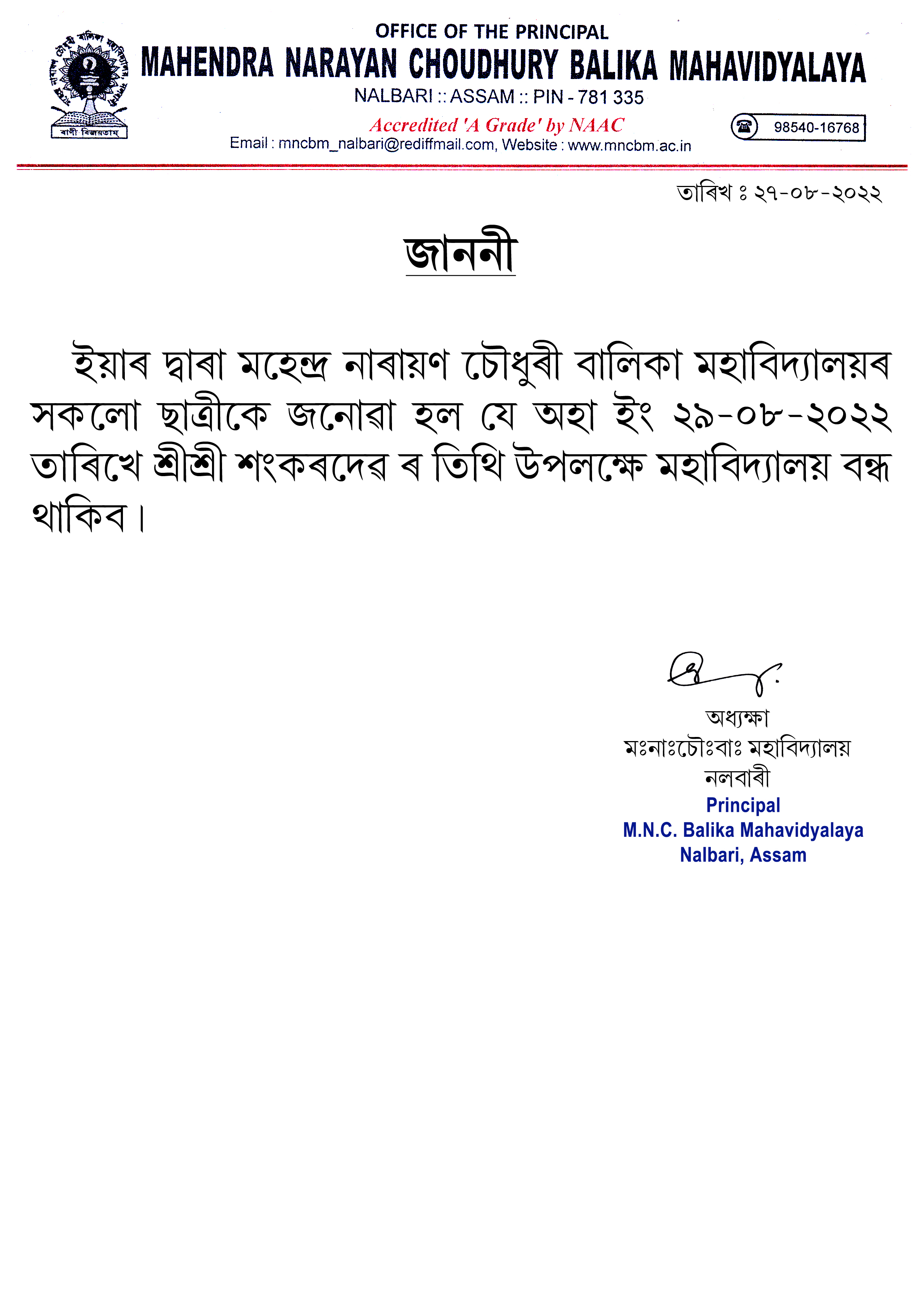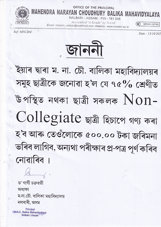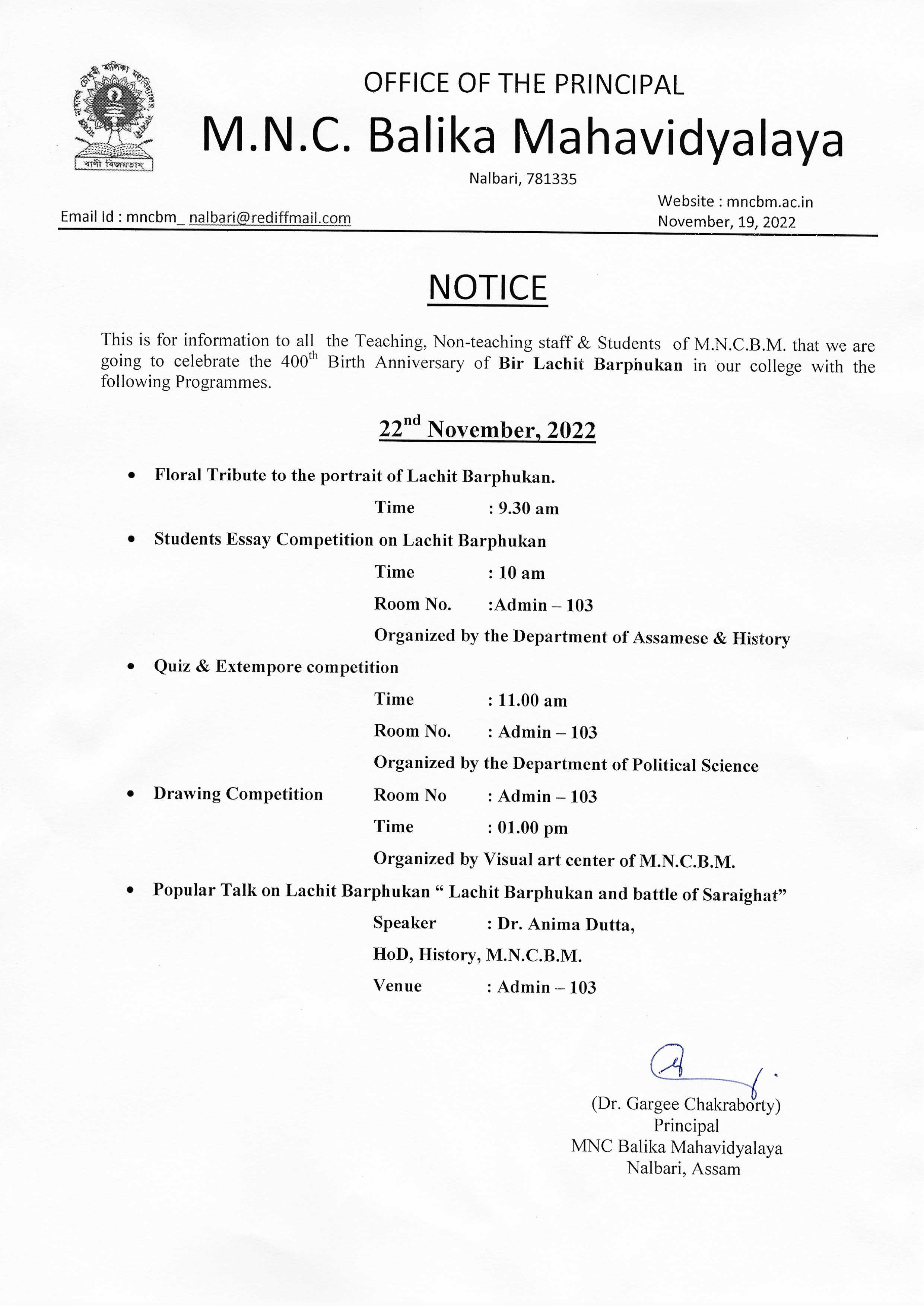 - Speech Competition notice for All the students of MNC Balika Mahavidyalaya View