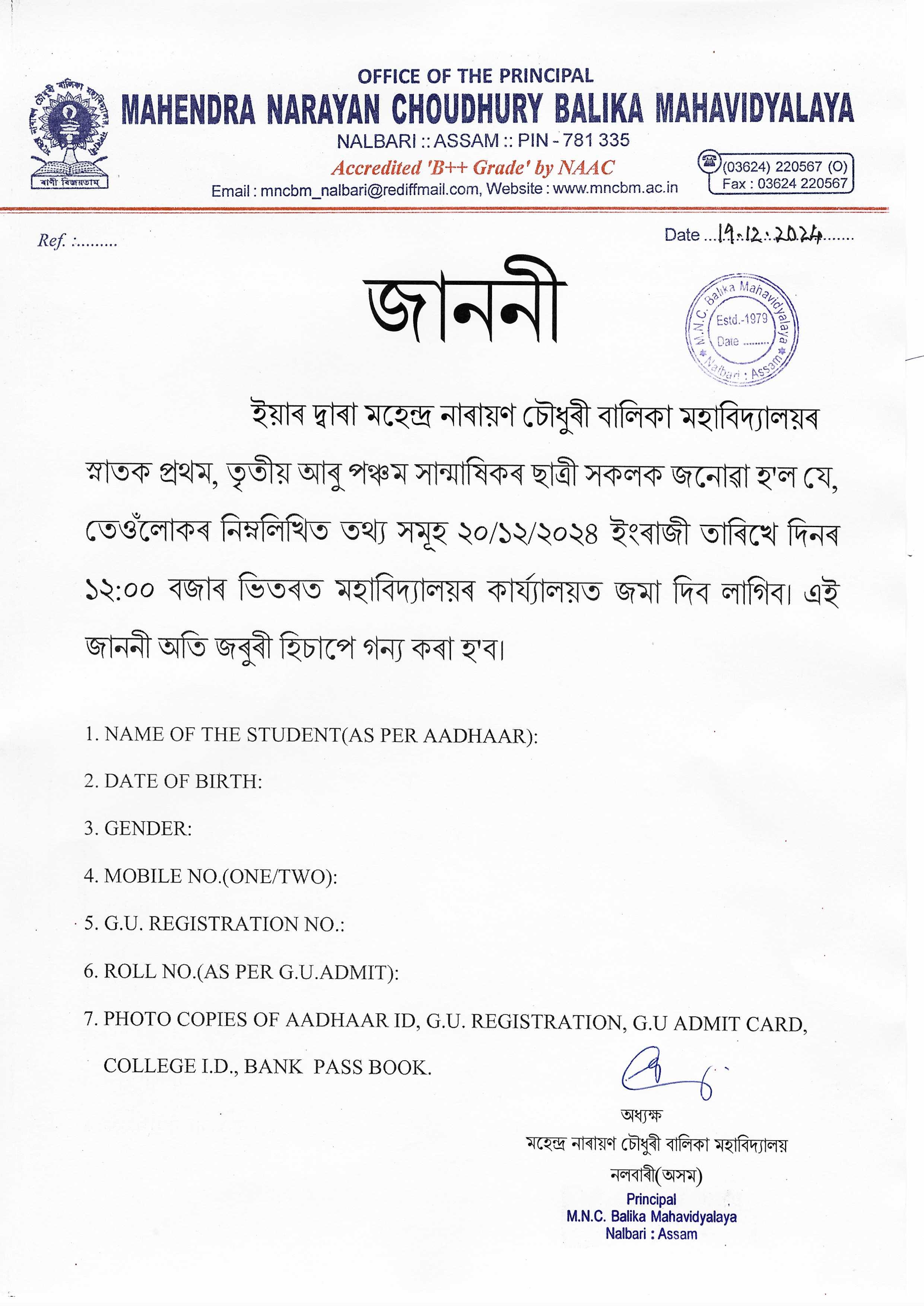 Mahendra Narayan Choudhury Balika Mahavidyalaya