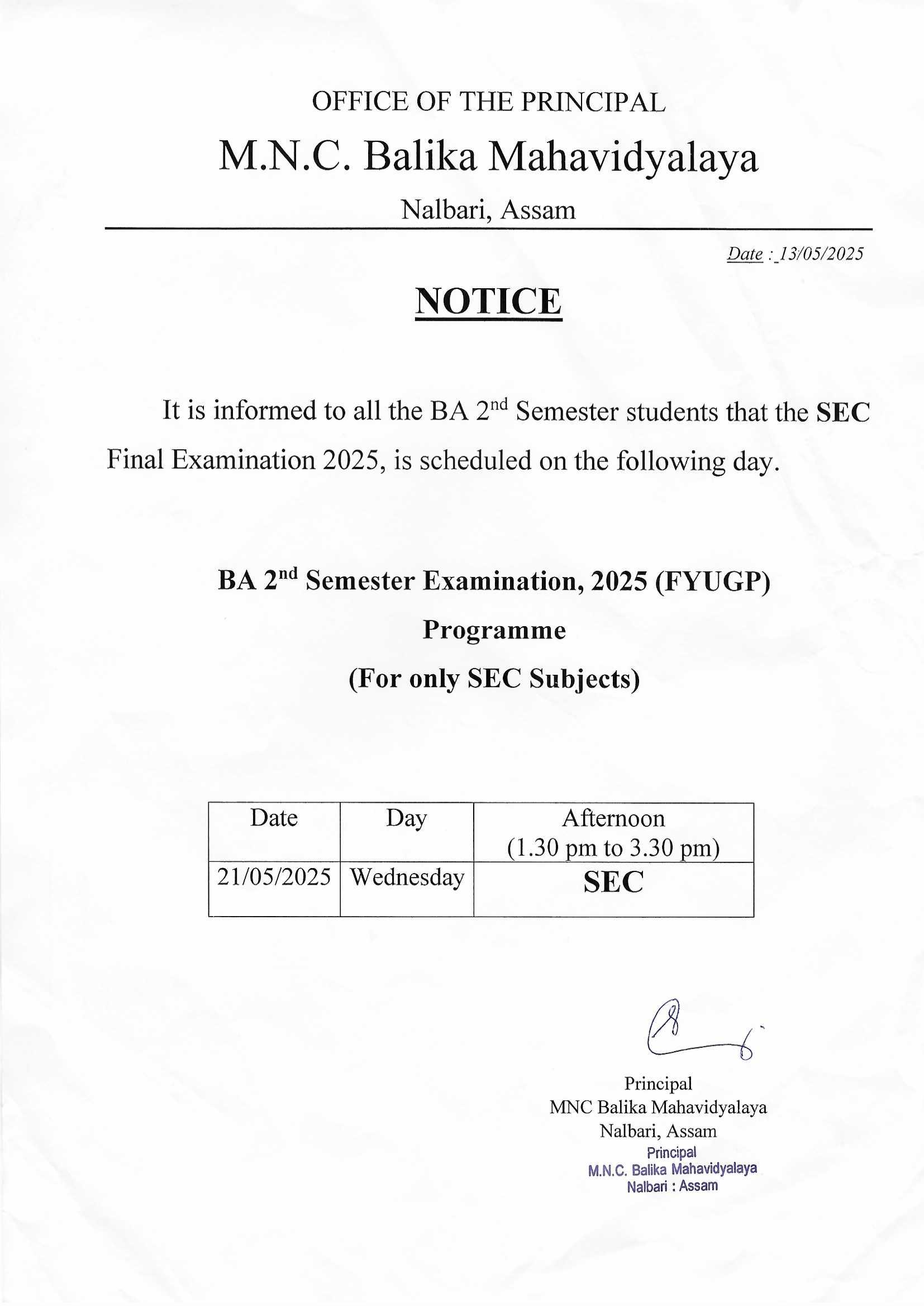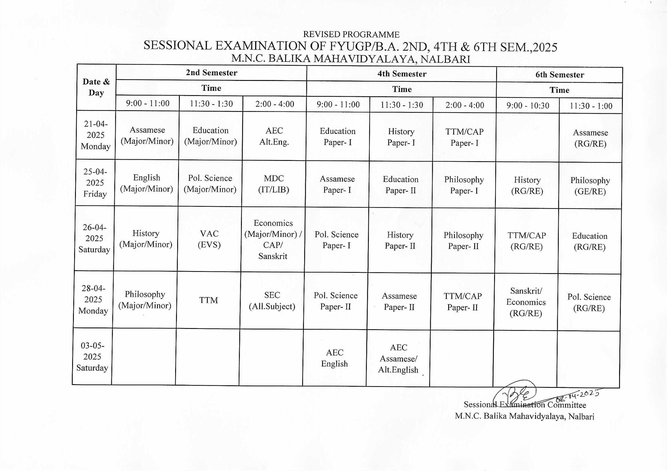 - Programme for SEC subjects for BA 2nd Semester Final Examination, 2025 (FYUGP) View