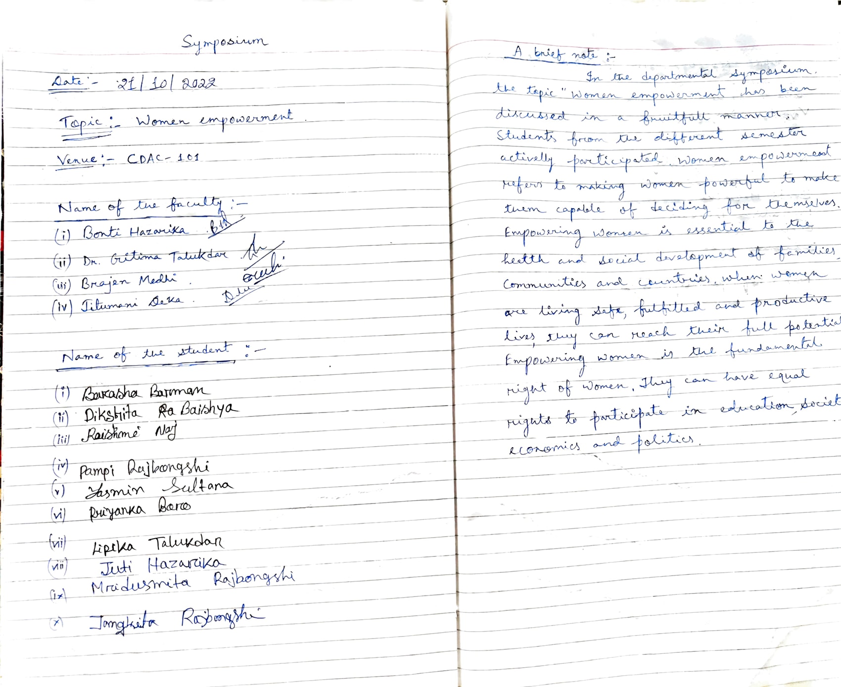 | 246 | Symposium | The department of Political Science organised symposium programme on Women Empowerment. | 2022-10-21 | View File |