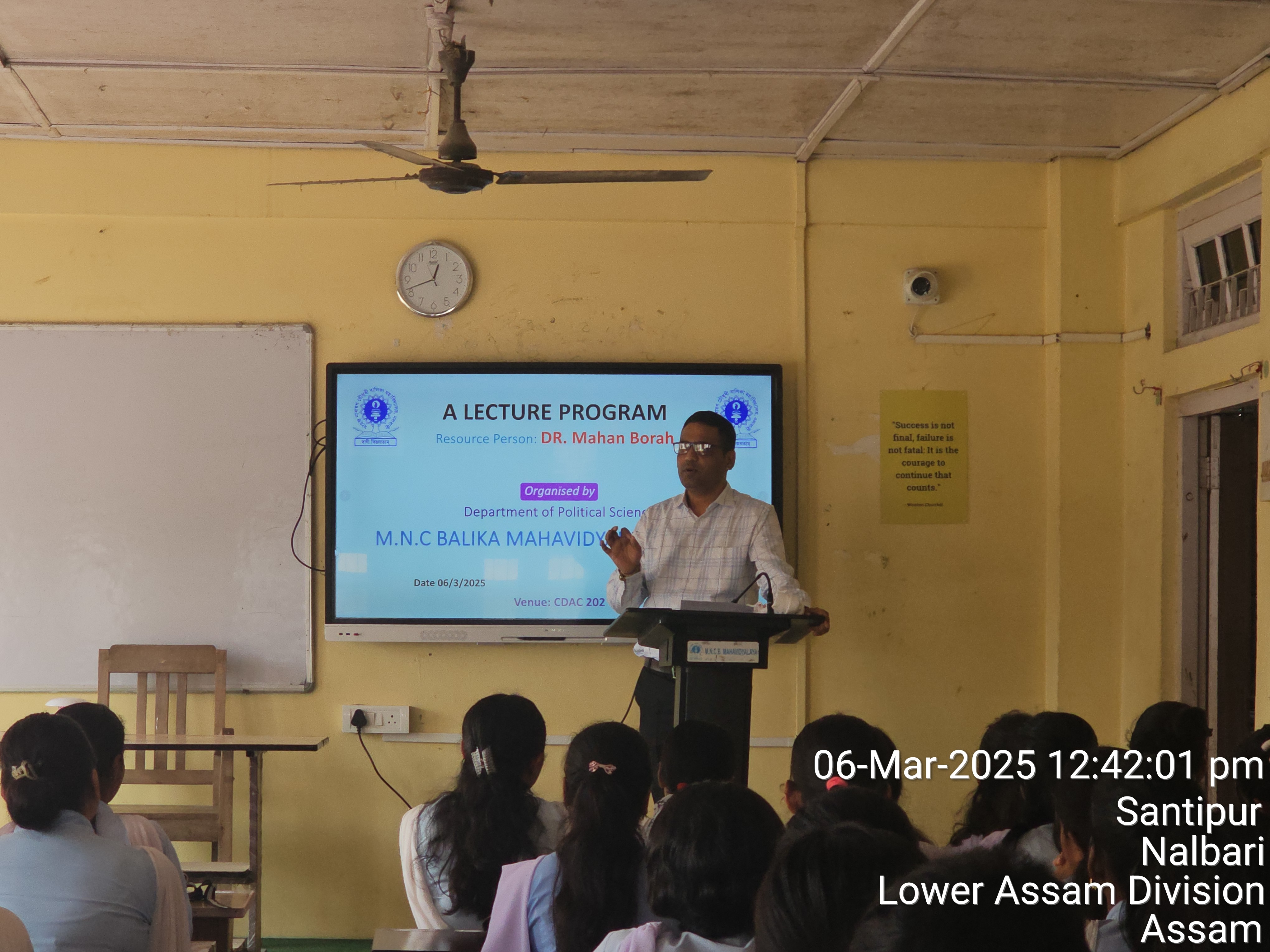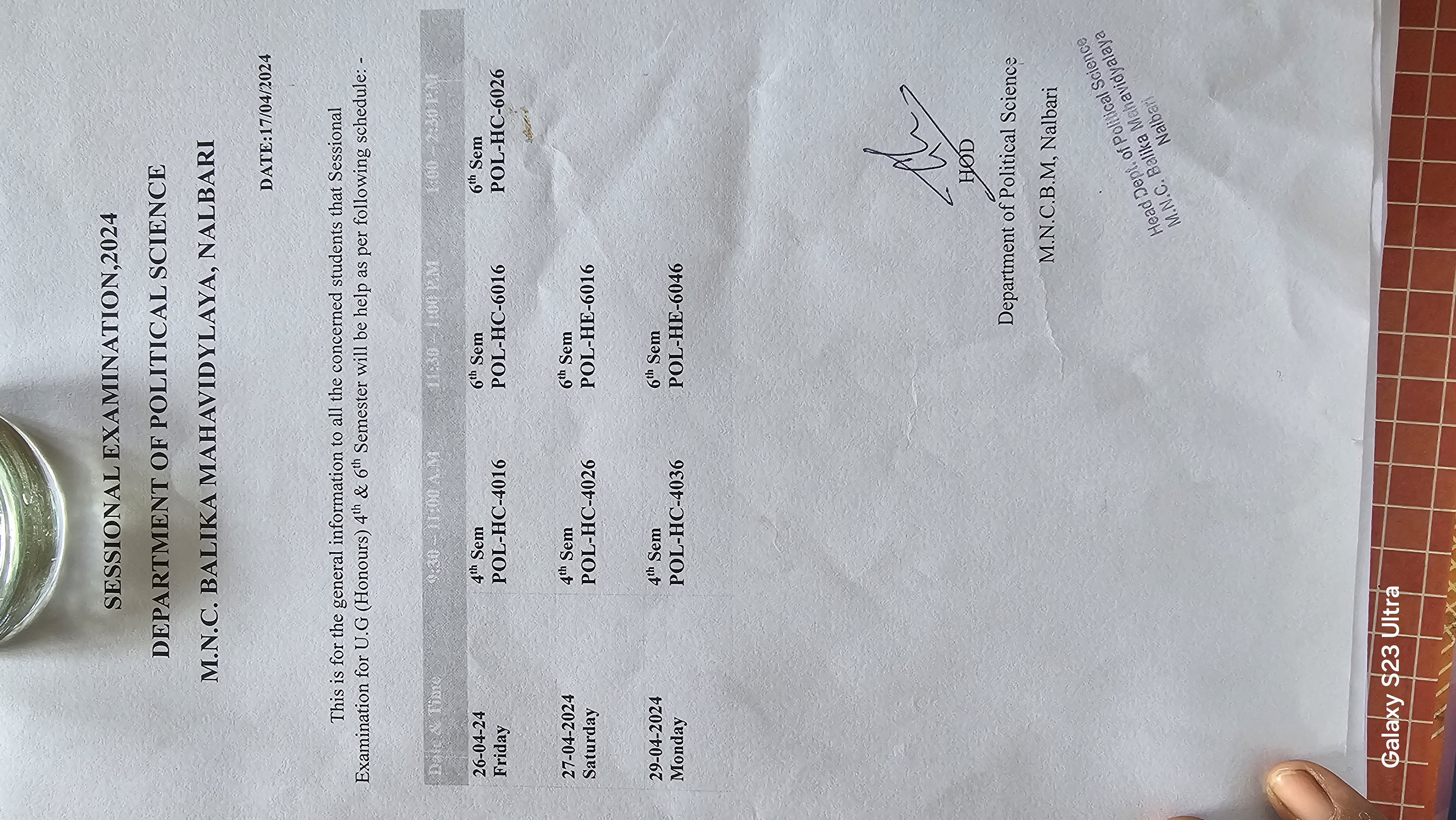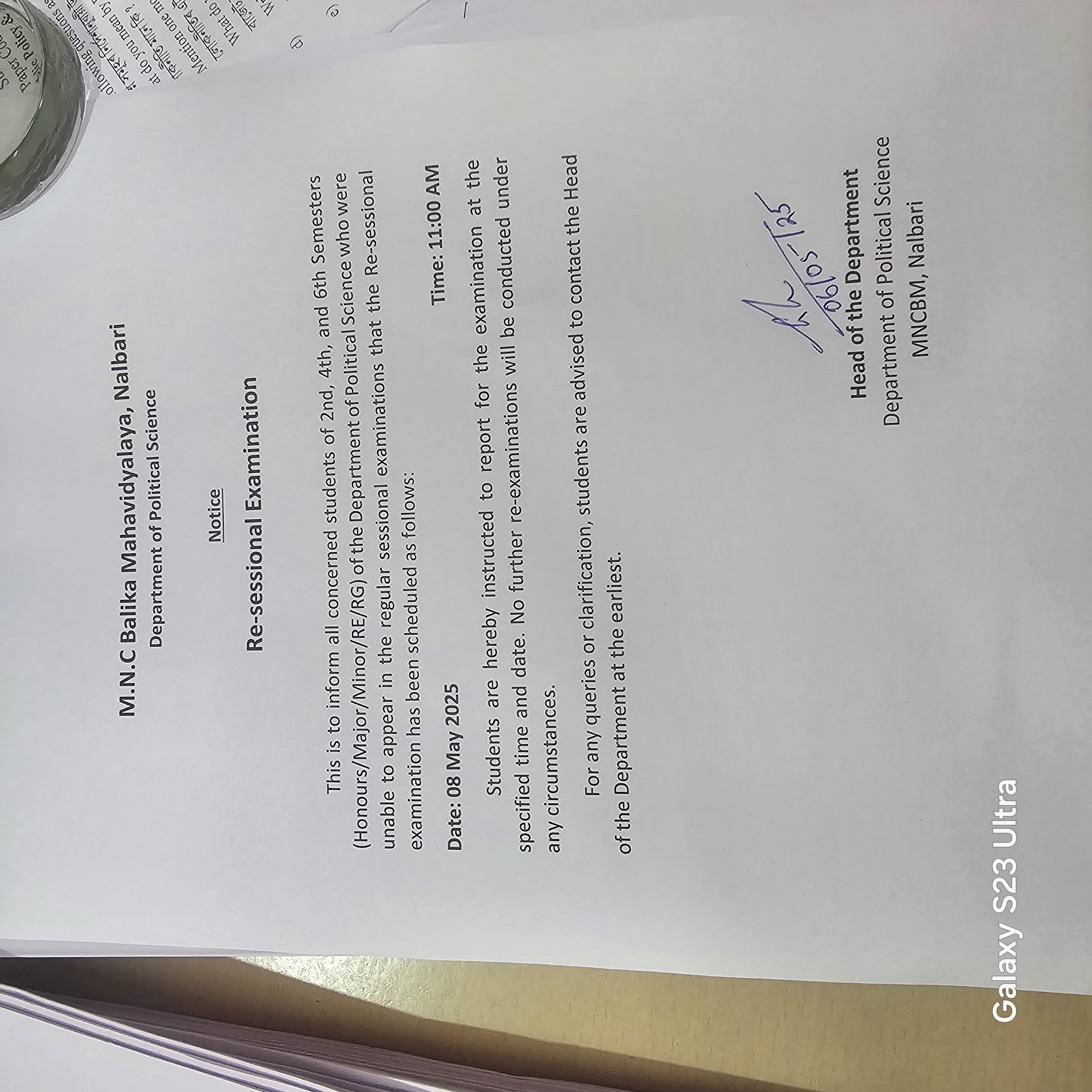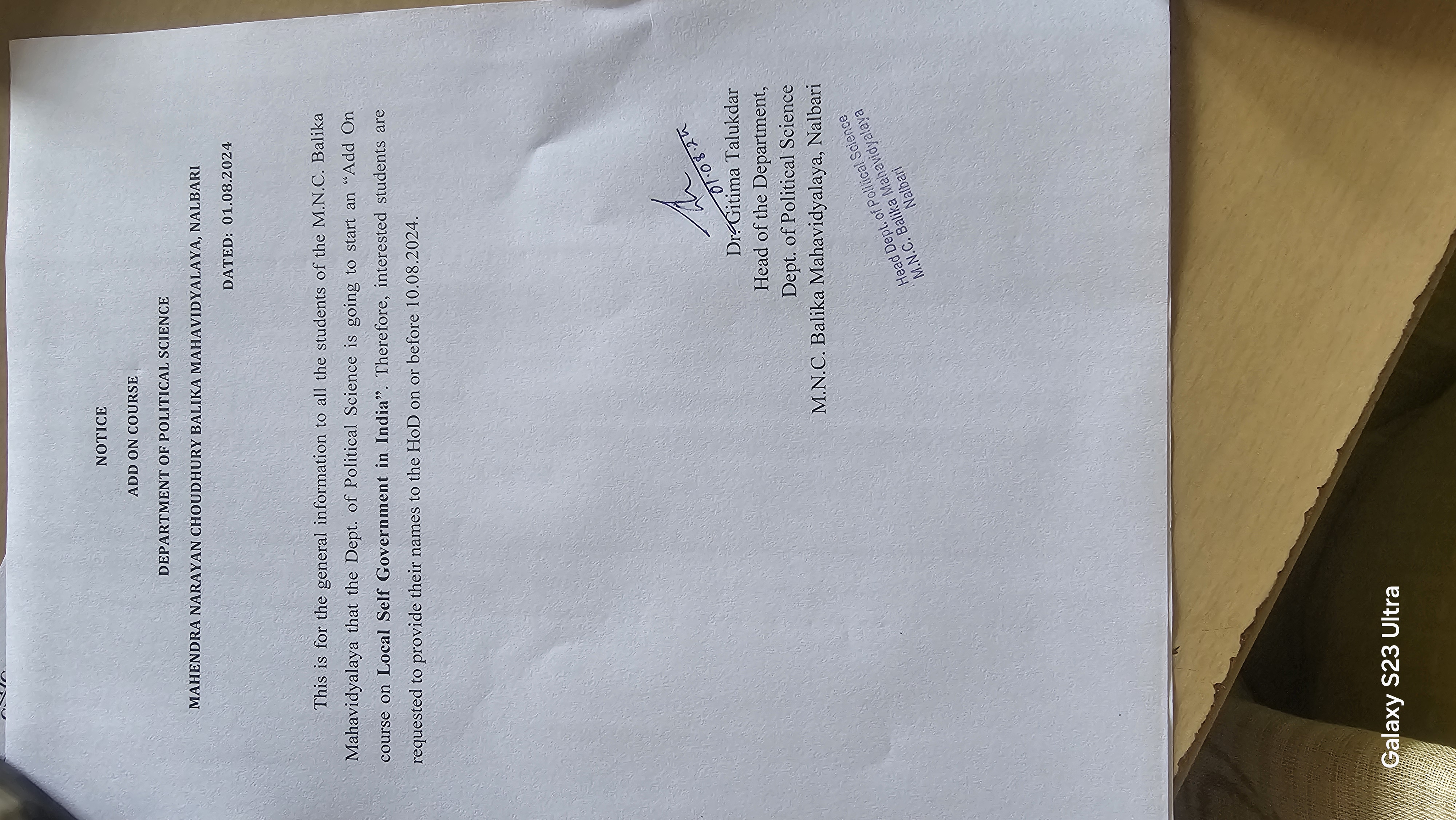 | 209 | Faculty Exchange Programme | The department of Political Science has organised faculty exchange program with the department of Political Science, Nalbari College on 16/11/2023 at MNC Balika Mahavidyalaya. | 2023-11-16 | View File |