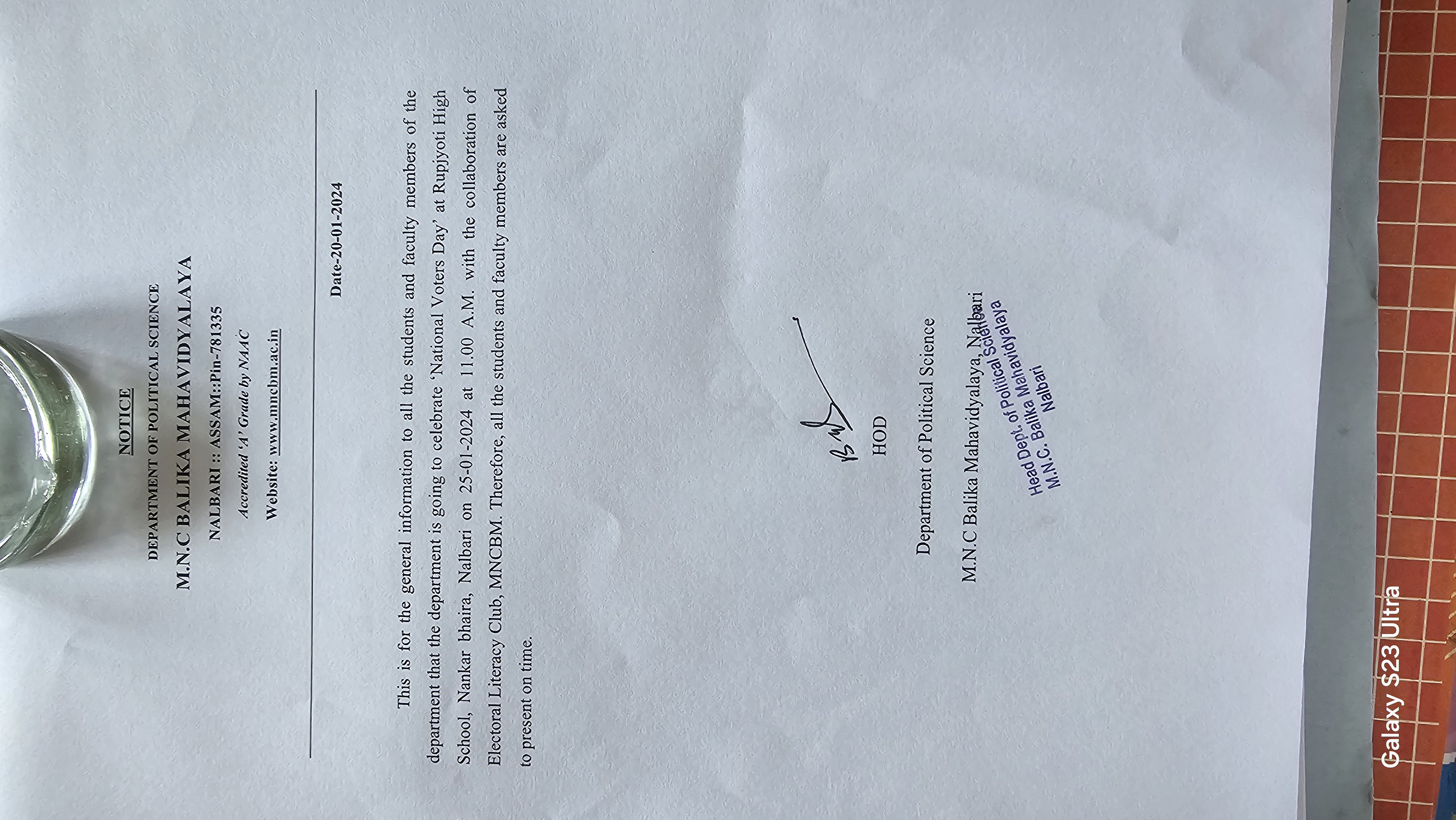 | 210 | Celebration of National Voters' Day | The department of Political Science has celebrated National Voters' Day at the Rupjyoti High School | 2024-01-25 | View File |