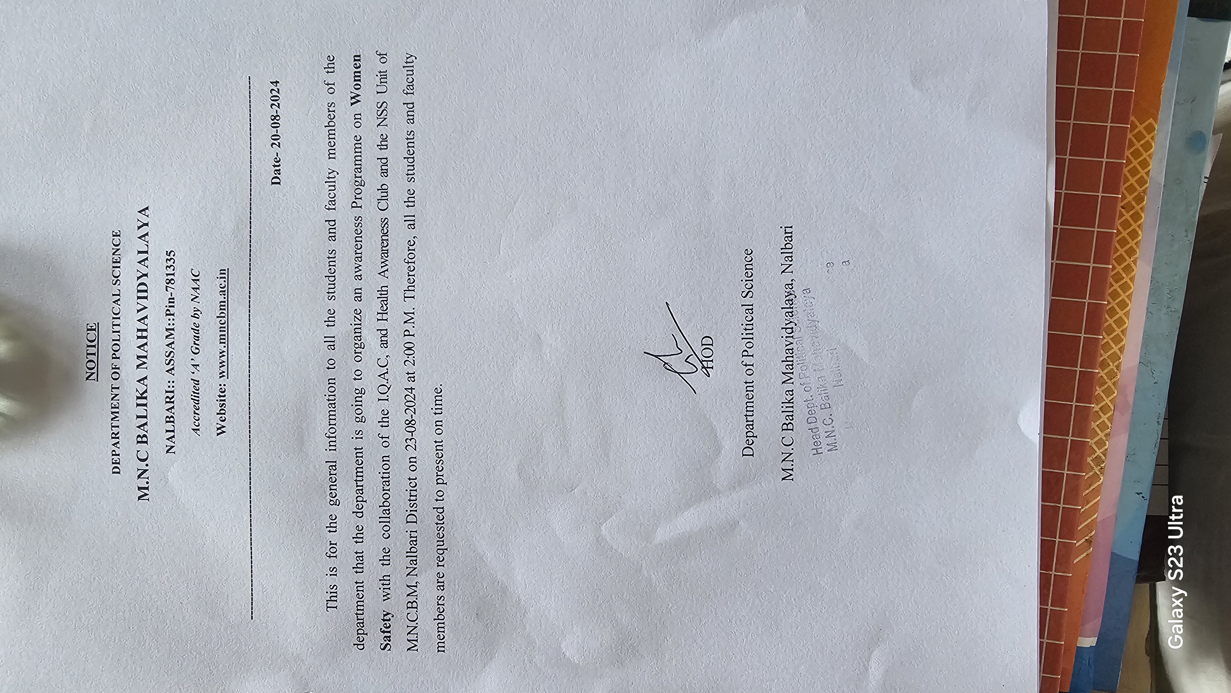 Health Awareness ClubAnd NSS Unit, M.N.C. Balika Mahavidyalaya, Nalbari | 2024-08-23 | View File |